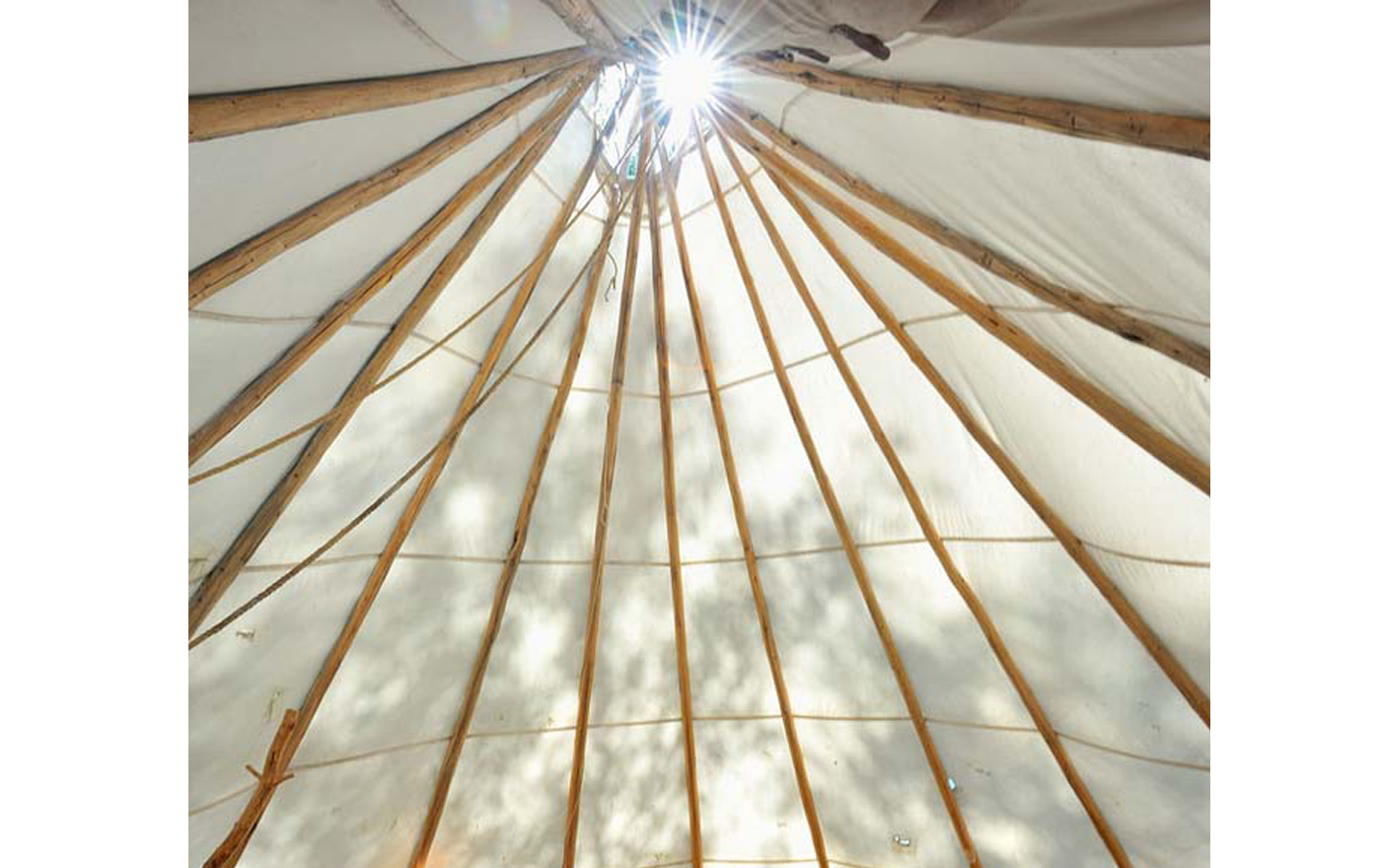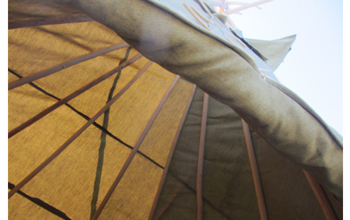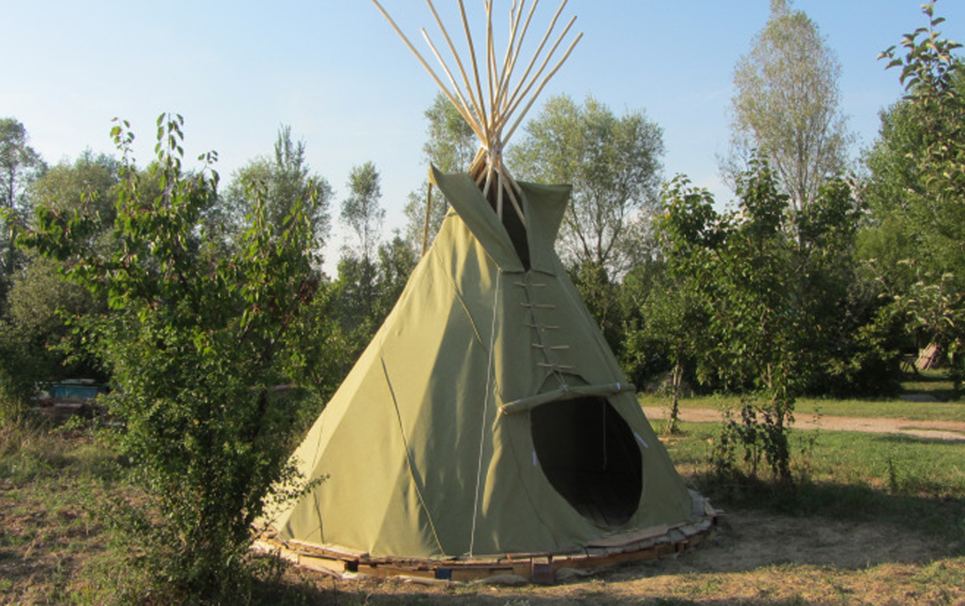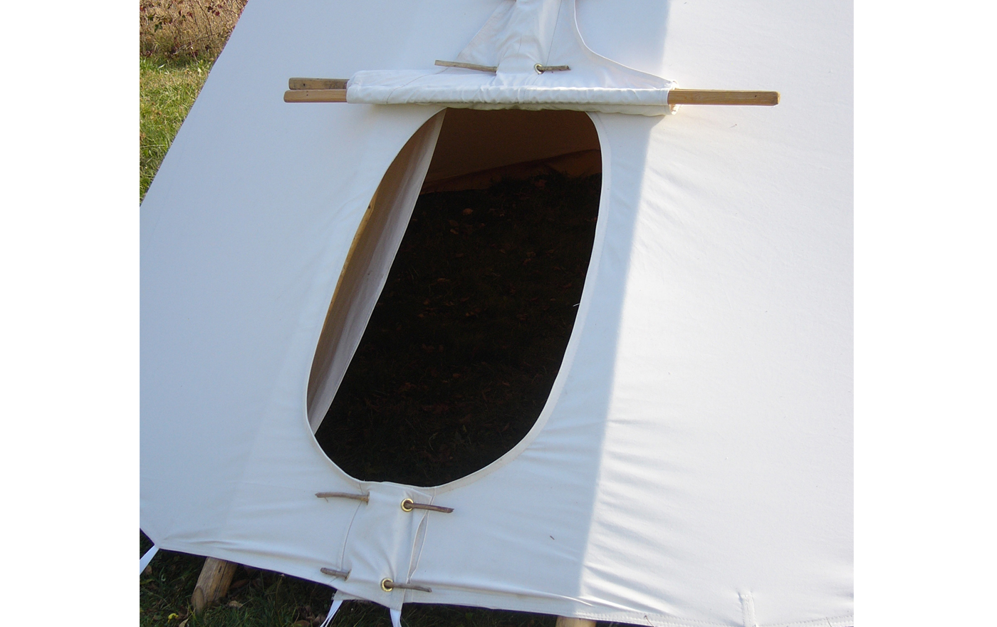 Viene realizzata secondo i disegni e le immagini delle tende dei nativi utilizzando tessuti naturali di cotone oppure piu' resistenti come il policotone o nei casi di maggior umidità e precipitazioni con tessuti sintetici Acrilici